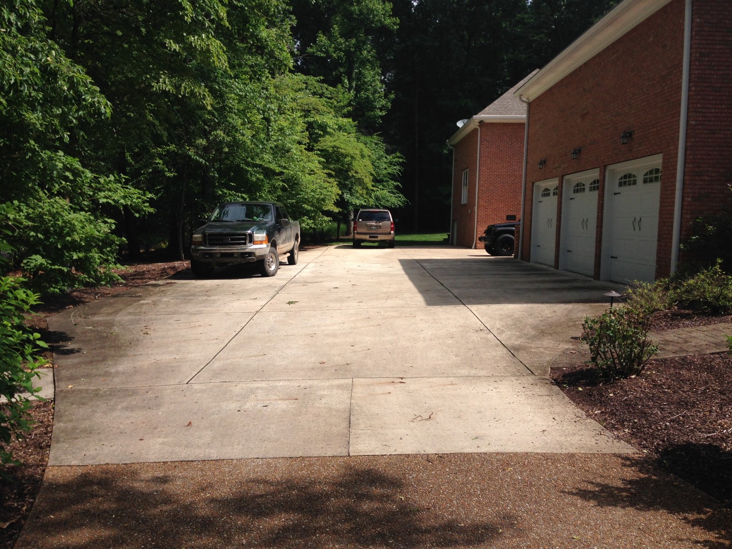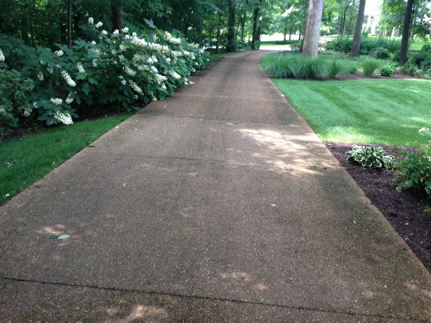 This is a long Aggregate Driveway, and at bottom is the garage is concrete. Very large brick house and drive. I'm cleaning everything. On a earlier post I was suggested to use SoftWash on the pavers. I'm just not sure about if the pebble stone driveway comes as clean too or should I powerwash it? Any suggestions on pricing just cleaning paver stone or drive ways would be very helpful too. Thank You!!