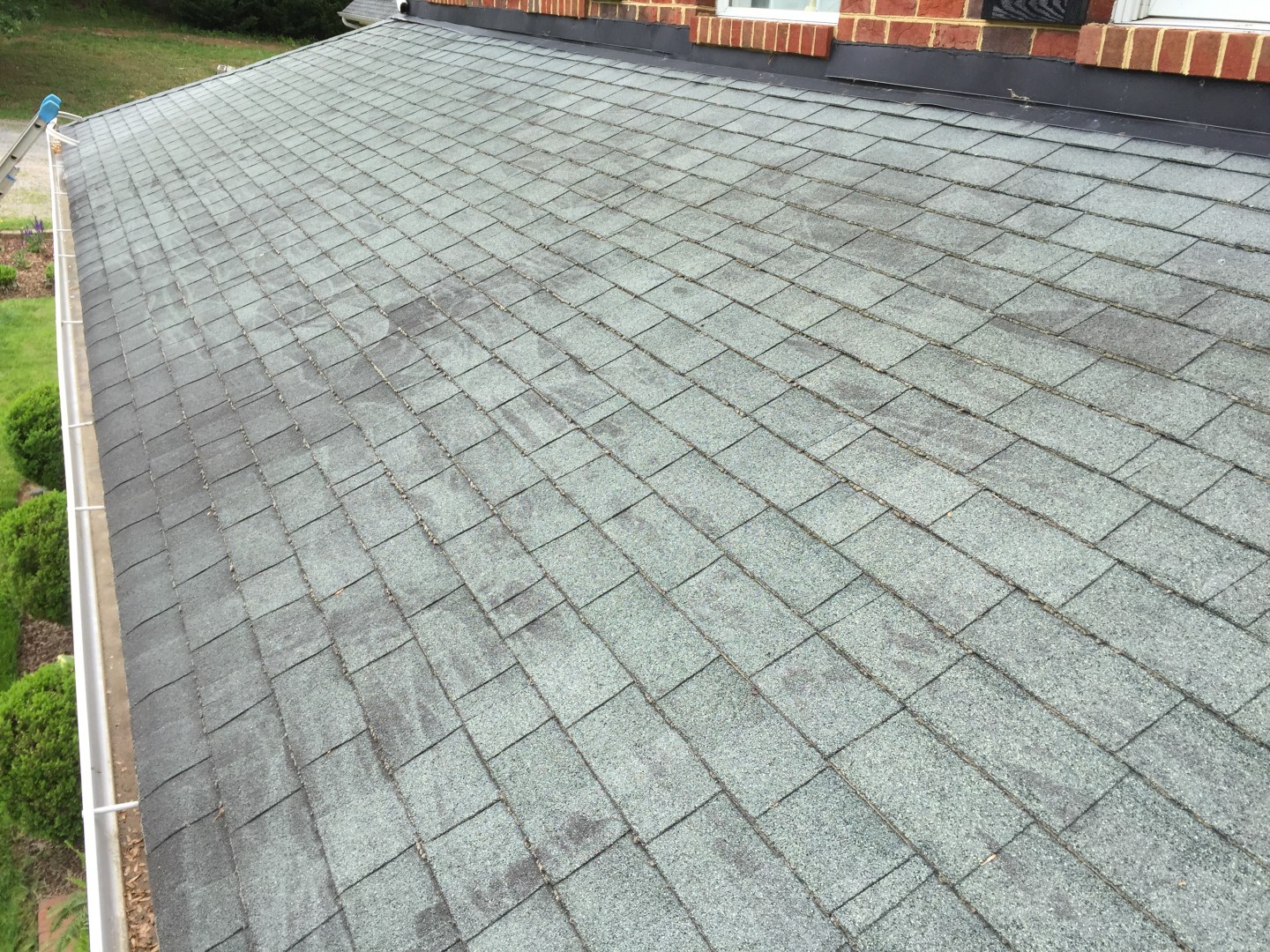 I cleaned this roof in May and discovered that someone, possible the HO had attempted to clean the roof with a pressure washer. At least the person didn't try to use a zero-tip like I've seen on concrete and decks in the past. Geez!!