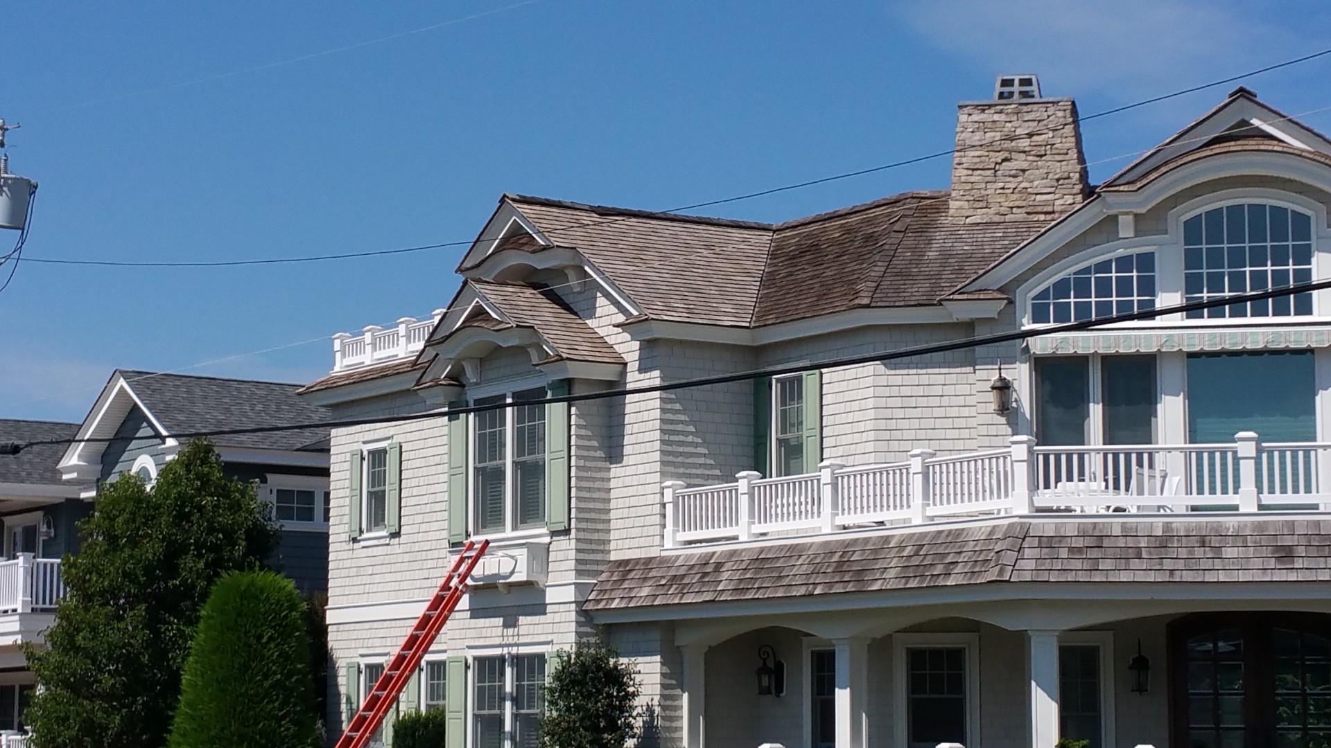 Today the Roof Wizard softwashed and restored this cedar shake roof and house in Stone Harbor, NJ. The homeowner is putting the house up for sale in the Fall and wanted it to look it's best. We washed the roof, house, three Mahogany decks, the Travertine tile pool deck, paver driveway and the windows. We used Wood Restore on the roof after rinsing the softwash solution, to neutralize and condition the cedar shakes. The results beyond the homeowners expectations and they will hopefully sell the house easily.