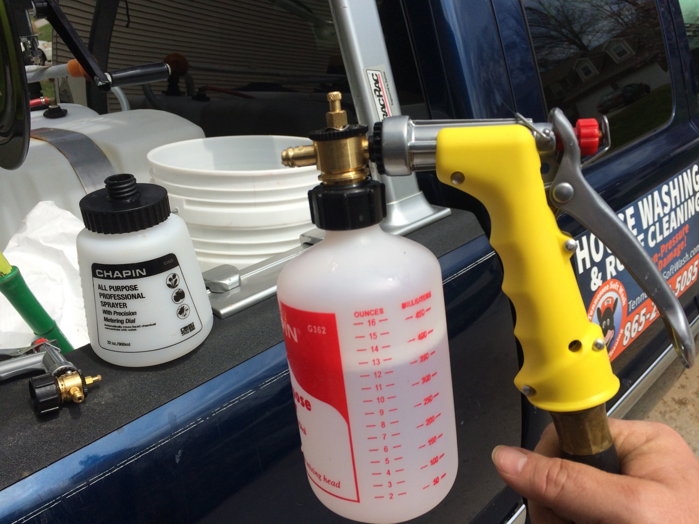 Hope this helps. Its a great sprayer.Hold onto the small black fan spray tip when you take it off to use as a stream sprayer! Its hard to find when you drop it..I learned the hard way. good luck.