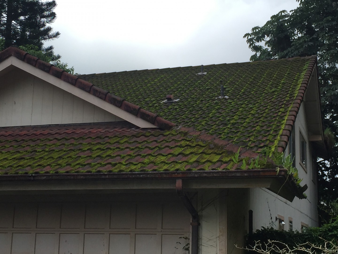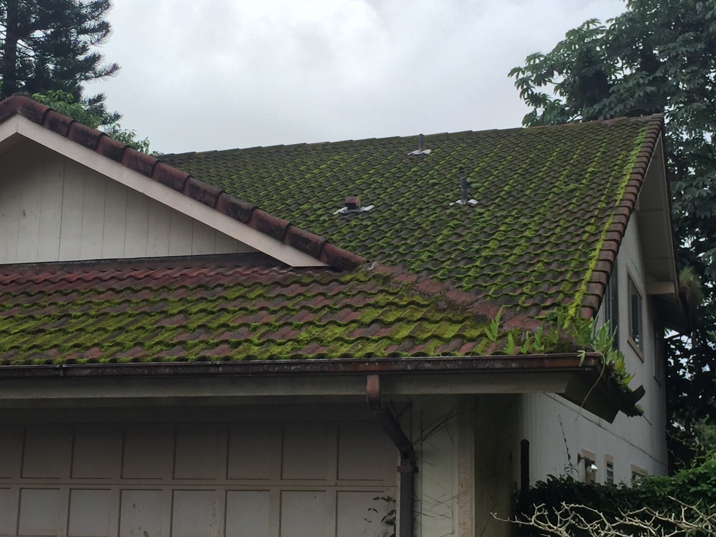 aloha guys have a metal roof to do but scared of this one I informed the customer that there is a potential paint damage under this mold and moss. Also any thoughts of how do this wall fast. the roots are deep I'm going to have do pull a lot of the big roots out by hand. Time consuming.