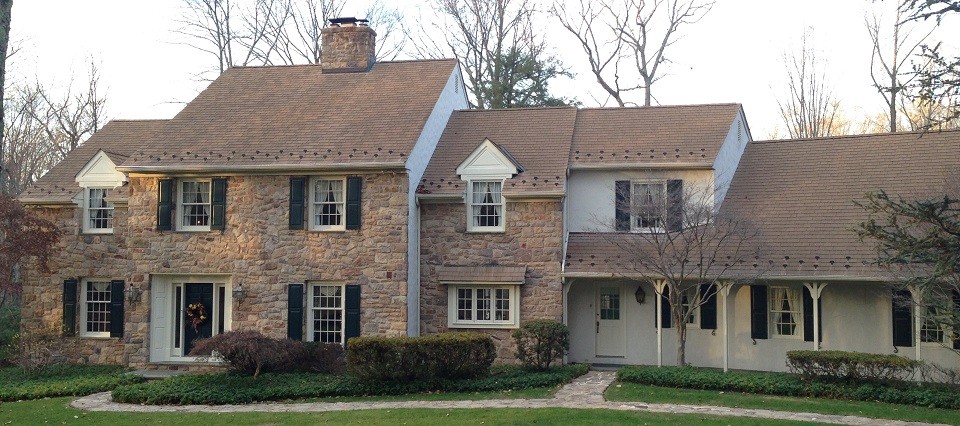 Vesta Wash is a SoftWash Systems 5-Star company that services the greater Philadelphia area. Vesta Wash cleaned this Tamko Lamarite synthetic cedar look shingle. If you look closely below the copper flashing you can see the original color. This shingle is a synthetic blend which is very fragile. We did not walk on roof and all cleaning was done from a ladder using GreenWash and TerraWash. For professional cleaning of unique properties visitwww.VestaWash.com