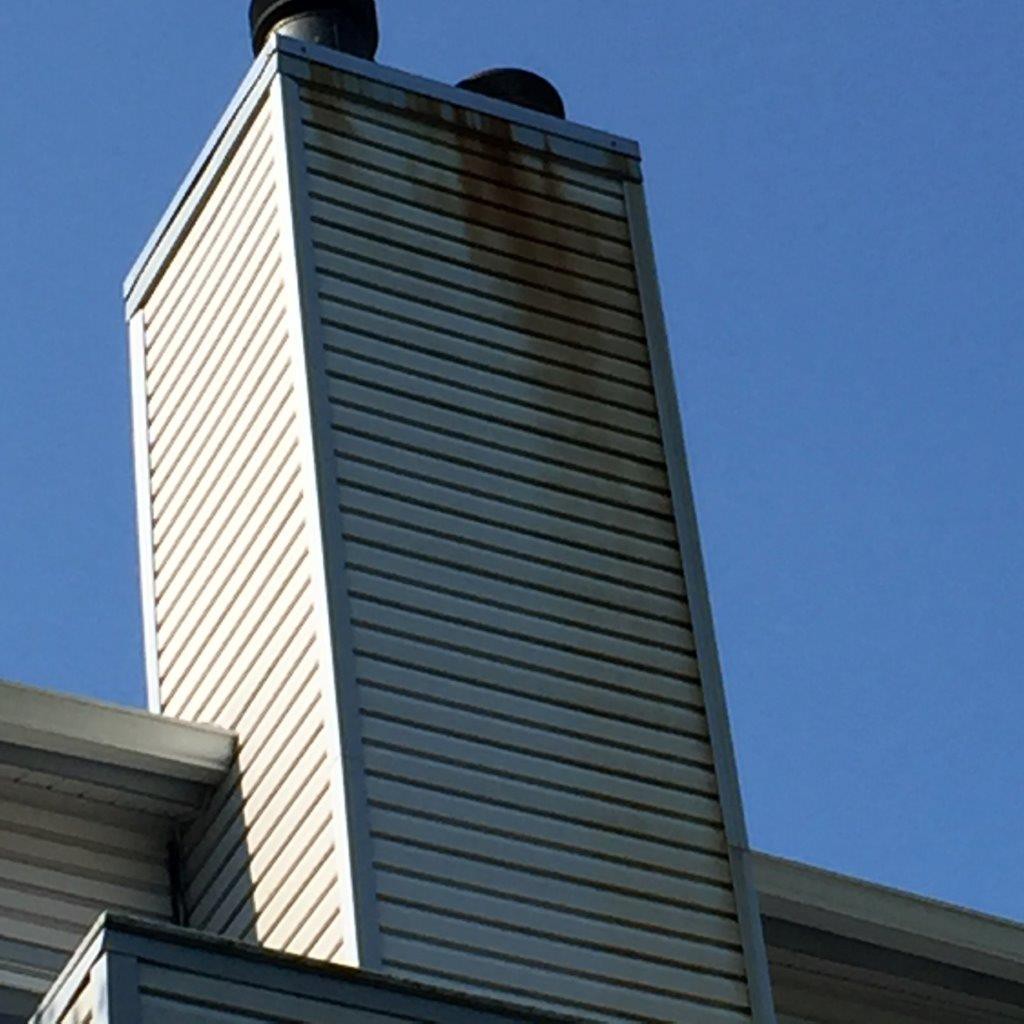 Vesta Wash recently cleaned vinyl siding, balconies, DuraDek Vinyl Decking, and clean rust at a 294 unit community in Wilmington Delaware without using a pressure washer, power washer or lifts. The fronts were easily accessible, but the ends were as high as 50' and on some portions were were unable to access the 3rd story balconies using our 40' ladder. DuraDek recommends cleaning their vinyl deck material 4 times per year, but many had never been cleaned and were black. Our client was concerned about using a pressure washer and we showed the benefits using a 5-Star applicator with SoftWash Systems. During our initial consultation I asked what about the rust on the vinyl siding around the chimneys. They said they had replaced the chimney caps and that next they would replace the vinyl siding. We offered our proposal to clean the rust and it turned out very well. We cleaned rust from around 22 chimneys and probably saved them at least $22,000 plus the inconvenience for the homeowners. This is a self managed HOA that cleaned in past using a pressure washer and their own in house maintenance staff. They had accessed the balconies by climbing over the roof, lowering a ladder. Very unsafe. We will next be offering gutter cleaning and roof cleaning.