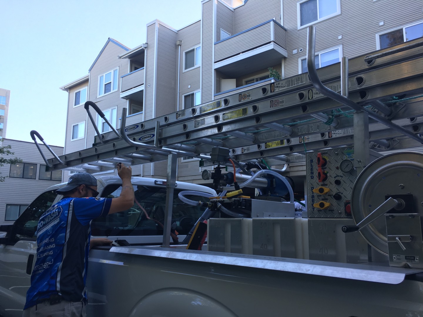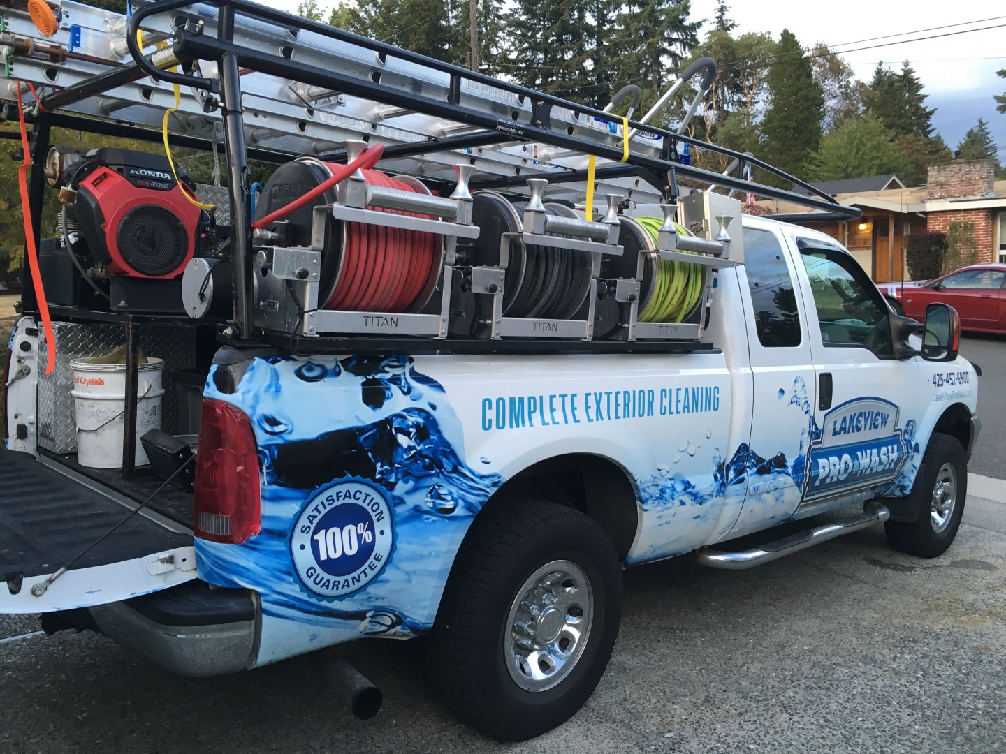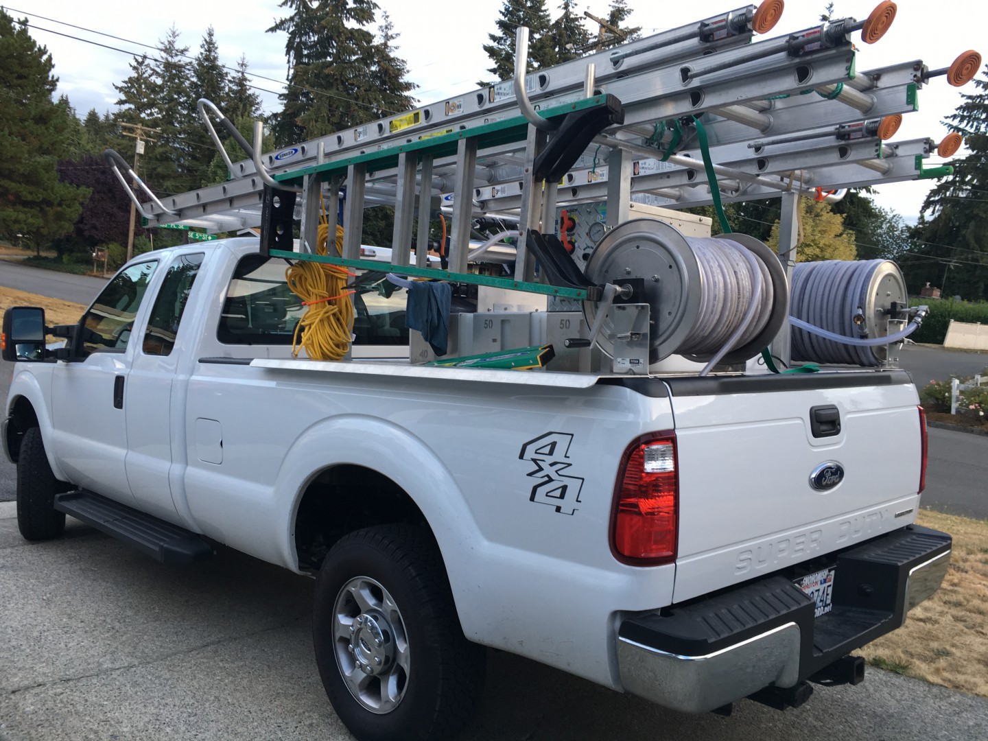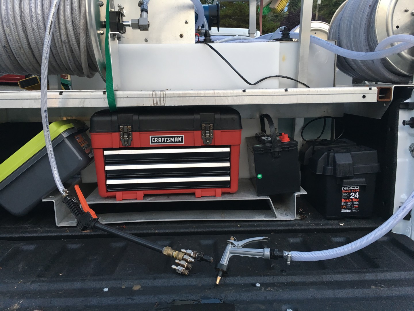 Another option for extra space is a cargo carrier. I included a link below if you're not familiar with them. I don't know anything about the company linked below - they just came up when I did a quick search for images. There are also gear bags for cargo carriers so you could put your lighter weight items that don't fit well on the carrier. It may be enough to get you buy until you can get a bigger truck if you don't want to go with a trailer. I don't do Soft Washing 40 hours a week, so I use a trailer so I can still have full use of my truck when I'm not cleaning. I've seen some photos of AC's rigs in trailers before as well and they look pretty sharp.
