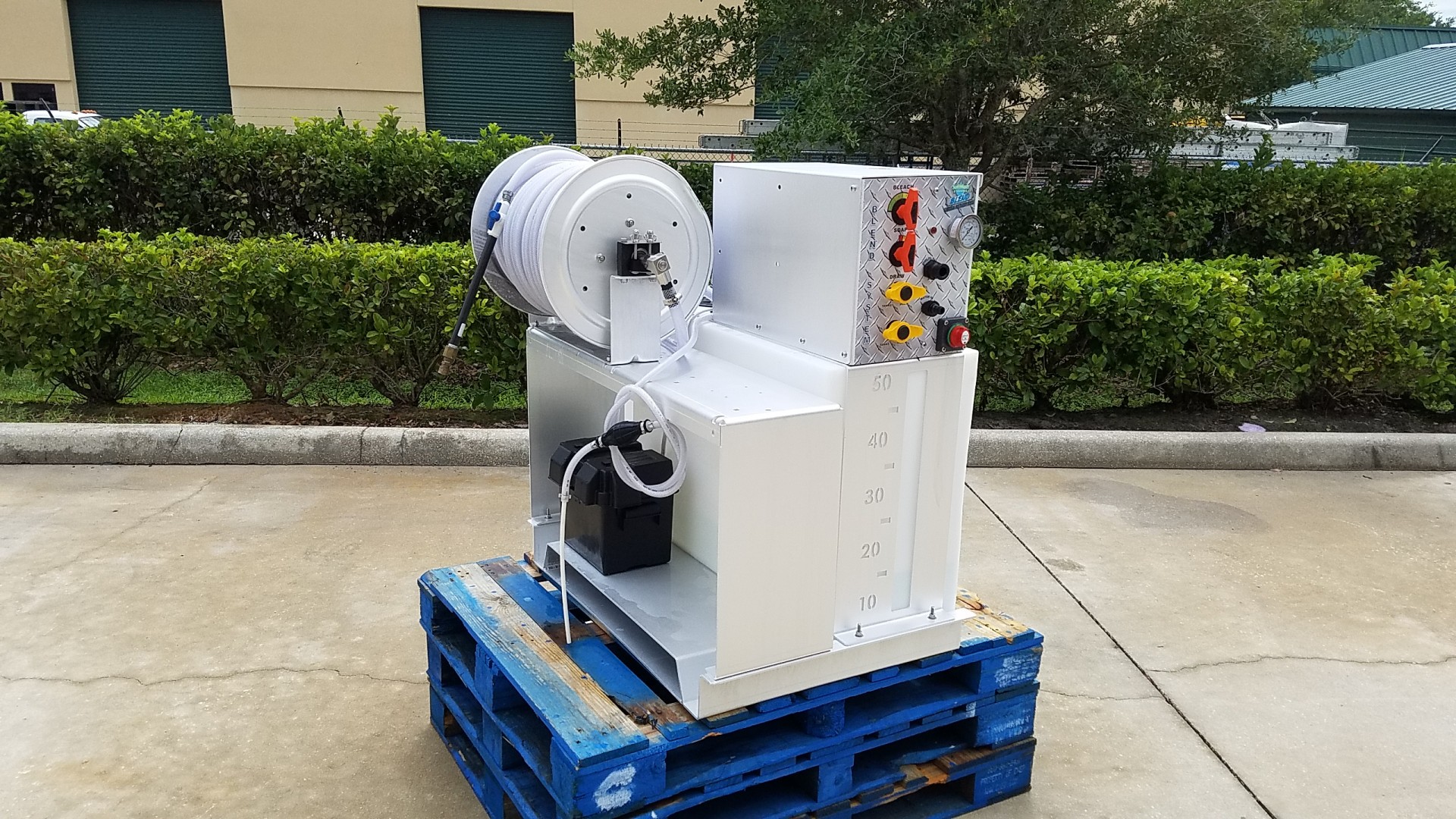 So This unit can be loaded onto the 72" skid? Blend 100 2 tanks then how many additional can fit on that skid? Like a bulk rinse, RO and that is it or more room too? Also 6x Greenwash injection. pre mixed and dispensed out of my container (bucket) or is there a storage built in?