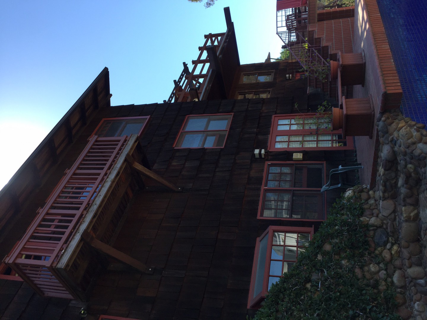 This is my first on-the-job encounter with this situation as it is not common at all in our area, but I have been asked to SoftWash this house with redwood shingle siding. The house is over 100 years old, which is rare for Southern California. The home owner says that there was an addition put on the house over 40 years ago, and that some of these shingles could be that old. He has lived in the house for 28+ years and other than small repairs hasn't put anything new on the house as far as siding goes. So that sets the stage...the parts of the house in the photos are on the north and west facing walls. As you can see, the north side is very dark, the west side has some of the color showing through.