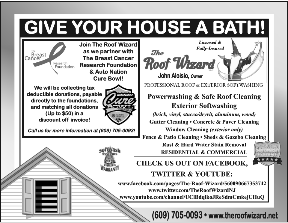 The Roof Wizard's Ad in the Hammonton Gazette for Breast Cancer Research and The Cure Bowl.....