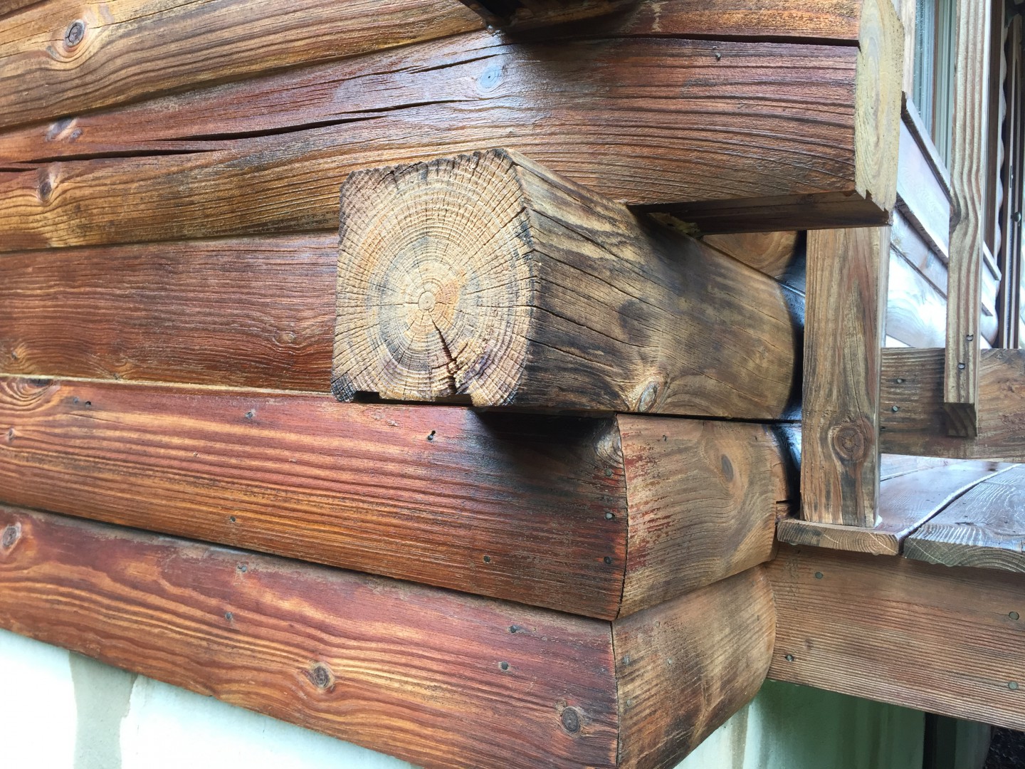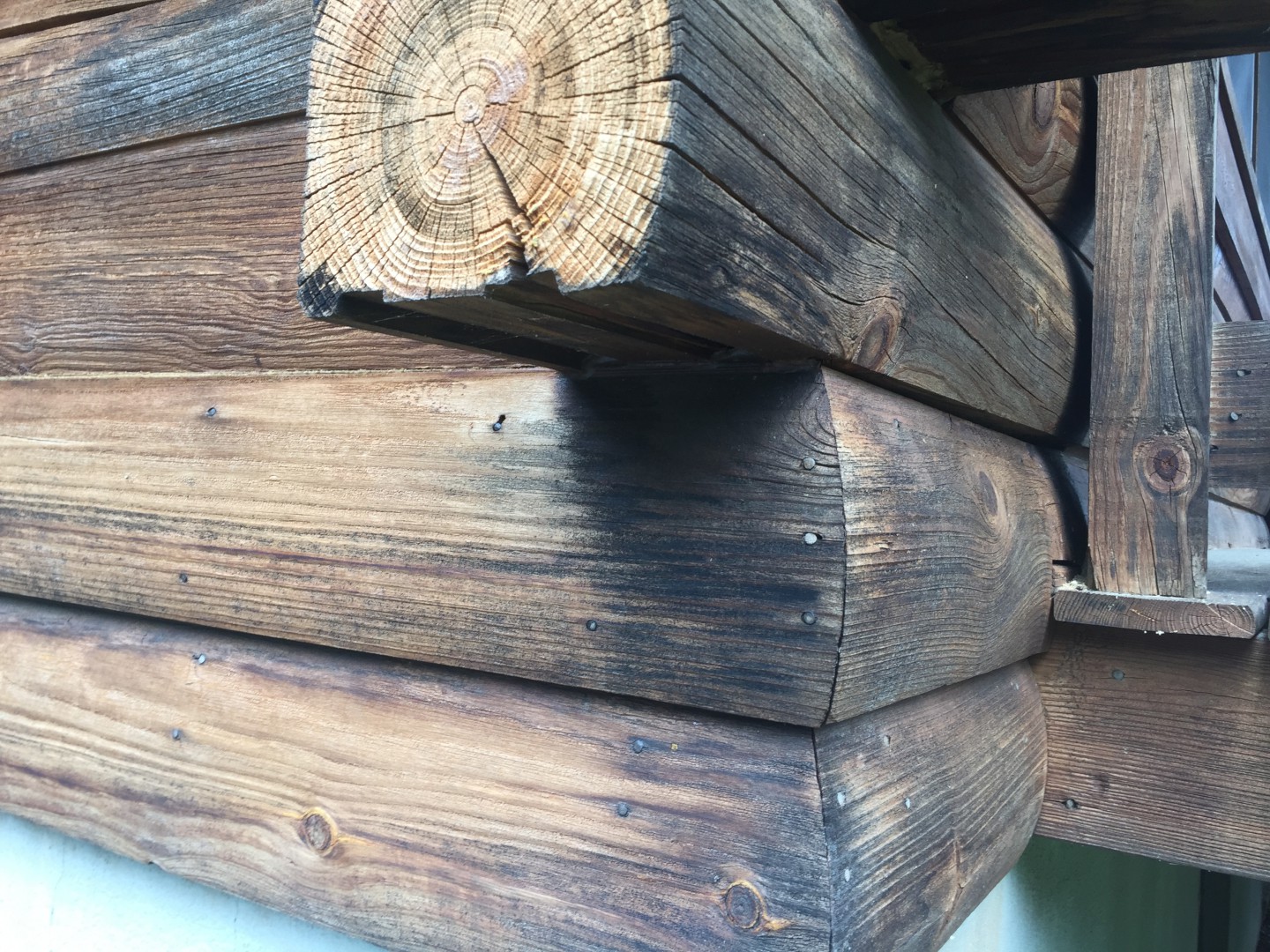 I also feel like this customer would've better been served by completely stripping the CWF-UV off, neutralizing, and then applying wood restore. This seemed to leave a great deal of the old CWF still on the logs.