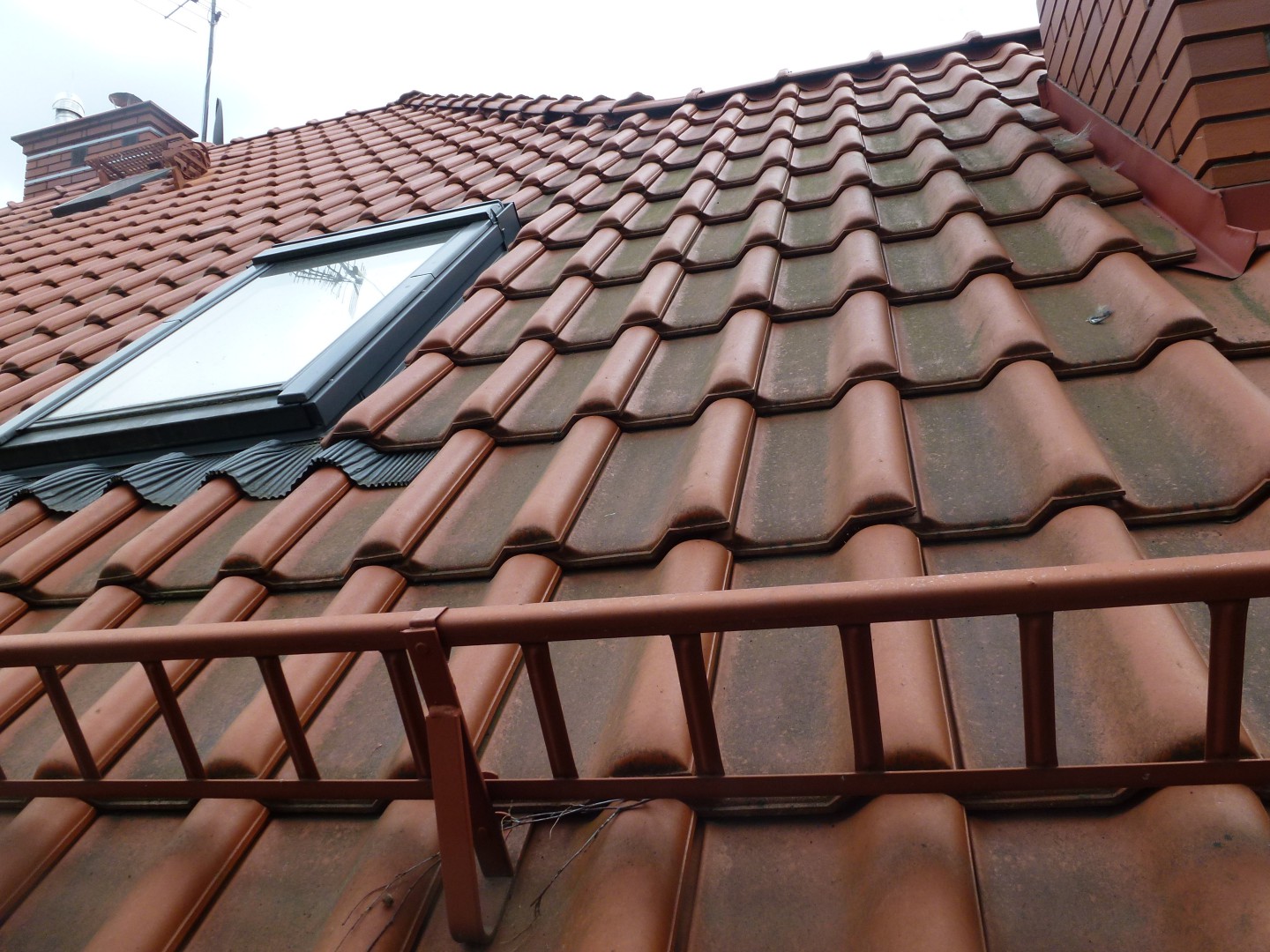 If you don't have one already, you should get a ladder standoff/stabilizer for both your added safety and to protect the customers gutters & roof.