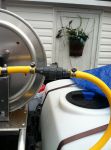 This is my Fatboy skid setup. It's pretty basic, but has been an extremely cost effective way to get into business. I've made some modifications such as the union before the hose reel. It allows me to bypass the reel when putting SH in my mix tank and for aggitating the mix. I installed a charging relay that I picked up at Boater's World and it has been a great addition (beats running a trickle charger from the house).
