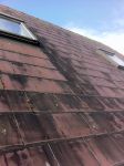 you probably will remember these photos from a few days ago.  I washed a black synthetic slate roof yesterday and uses a mix based on the apple mix but the results were poor. I expected the black fungus to disolve but was disapointed with the results. To be honest I didn't add enough tsp or borax to the mix but would that much of a difference. I was able to remove a lot of the fungus by using the pressure washer lightly. One thing I noticed was white spots where I cleaned. This was a result of the surface coating coming off the slate. I checked the roof of an adjoining garage which we had not sprayed and saw the white spots there only less noticeable because of the fungus. I think it is caused by acid rain or else the fungus, what do you think?