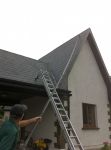 Hi all we tried to clean this roof today with some success but not finished yet. I would like some advice on where we can improve our way of doing the job. We started with 70ltr of water 30ltr of SH (10/11%) 17ounces of Green Wash. We sprayed the roof three times and still on some parts of the roof didn't come up clean. This roof is synthetic slate. I might add that we added more SH after spraying the first section. In all we used probably 35ltr of SH in the first batch. Should we rinse the roof while it is wet? All advice gladly