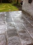 Could do with a bit of help with the following. I went to this house today. The owner wanted the roof power washed. It is covered in lichen as you can see from the photos. I would like your and everybodys elses opinion as to the best method of dealing with it. Today I just treated it with fungicide. I also cleaned his concrete footpaths and his slabs. I used 35ltrs of SH, 65ltrs of water with 17 ounces of Green Wash. I treated it twice with a two hour gap inbetween. It improved a bit but I still had to power wash it. What way would you guys go about it. Lastly as you can see from the final pictures there is a lot of black fungus spots on the concrete. This is a big problem over here especially on Indian sandstone slabs. Is there a way to remove these unsightly spots. Thanks in advance.