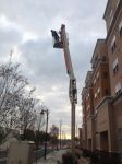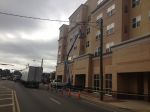 This is one of those jobs that brings everything tough into one pacakge.  In one small area we have to contend with power lines, narrow & busy sidewalks, addtional business storefronts, a construction zone, a bus stop, lift work, and a hotel entrance that never closes.  Not to mention this location is less thant two blocks from the FAMU and FSU campuses and school is now in session.