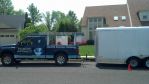 Jeff, backing up isn't really hard. When you have the ground man get out and back you in it is a piece of cake. Also the longer you do it the easier it gets. I just like having everything in the trailer out of the elements. When its cold we throw a heater in there ( yes we take out the gas when we do this) this way things are ready to go in the morning when the temps are low. Only sometimes is it a pain in the rear when we have the trailer. I am currently building a unit that will allow us to just use the truck for days when there is no concrete and when we have concrete we will use are smaller trailer (enclosed) with the two pressure washers in it.