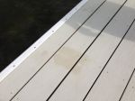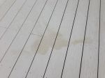 Its not a trex deck, is the newer ones I believe PVC? Vinyl? , we softwashed the deck and when we finished we found 3 stains that look like this. Any recommendations, the guy really wants them out, but I have no idea what to try. I also tried gutter grenade on it. Any help would be great.