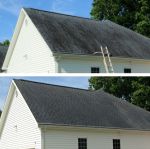 This home suffered from severe mold buildup on every side of the roof. The shingle , being light blue in color made the mold stains stand out more than normal. Using our low pressure washing system we were able to restore this Salisbury MD Roof to its original state.