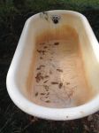 We were cleaning a deck with a 1% SH and soap mixture. Customer asked the guys to spray her antique 150 year old bathtub in the yard and brighten it up. (They are turning it into a fountain). Got a panicked call from the crew. Mixture turned the enamel in the tub brown. I need to make it white again. No amount of rinsing has helped. Ideas?