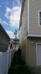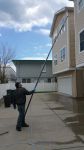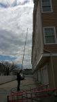 This past week The Roof Wizard's Crews cleaned the exterior of this 12 unit condo complex in Wildwood, New Jersey. Once again, the radically changing Spring weather in the NorthEast was cold (48 degrees) and windy (35 MPH). Typically we can softwash to the top of these three plus story buildings from the ground, but not with those winds. We had to use our SWS water-fed pole attachment to get all the way up, for most of the building. The front of the building with all of the balconies was a challenge. Another issue, with most shore towns, is water pressure. We made fully use of booth booster pumps, which helped us complete the project in just over 8 hours.