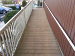Thanks Chris. Yes we used only a softwash process. The ramp was hit with a 3% mix and let sit for about 15 minutes. The steps  with a 2% mix and a 5 minute dwell time. Basically we do the flat surfaces of them first and then the rails and spindles. What winds up happening is the flat get another coat from us doing the rails, while it has been dwelling the whole time. Then we just rinse. We do use a booster pump to rinse, so that helps greatly with deck cleaning.