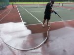 I had a client ask today If I could Softwash their tennis court. The low spots in the court have gotten mildew and mold where the water sits. The court is surrounded by plants and flowers. Can I hit it with a 2% SH solution and push it around with a broom just like if you were doing a flat roof then hose it off? And if so then hit the plants and flowers real well with plant wash? Any thoughts or knowledge on this would be helpful. Thank You