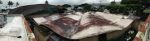 - Power washing with a surface spinner, 8gpm @1700psi, over the area tested with 1%. This was effective in removing everything, and in my opinion left a perfect situation to begin the repairs of failed fabric and coating. (4th photo left side)