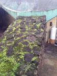 This is an iconic dome roof, laid with fabric and coated with Hydro-Stop. Some areas of the Hydro-Stop have failed and other minimal areas the coated fabric is lifting. The growth on this roof is hard and dense and contains cooking greases as well. It does not have the appearance of other spore based infestations. Up close it looks more like flaky, dehydrated, cracked, desert soil. (photo 5 but not a great pic)