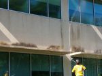 The Roof Wizard was contracted to clean this administration building in New Jersey. We softwashed the entire precast building and all the entryways. We also cleaned all the exterior windows and curtain wall entrance. The project was just over 50,000/SF of precast and 450 windows. They owner was having a large corporate event this week and we only had one day to do the job. We utilized all our crews and worked on site for 14 hours, used 400 gallons of SH and had a total 2300/LF of hose laid out.